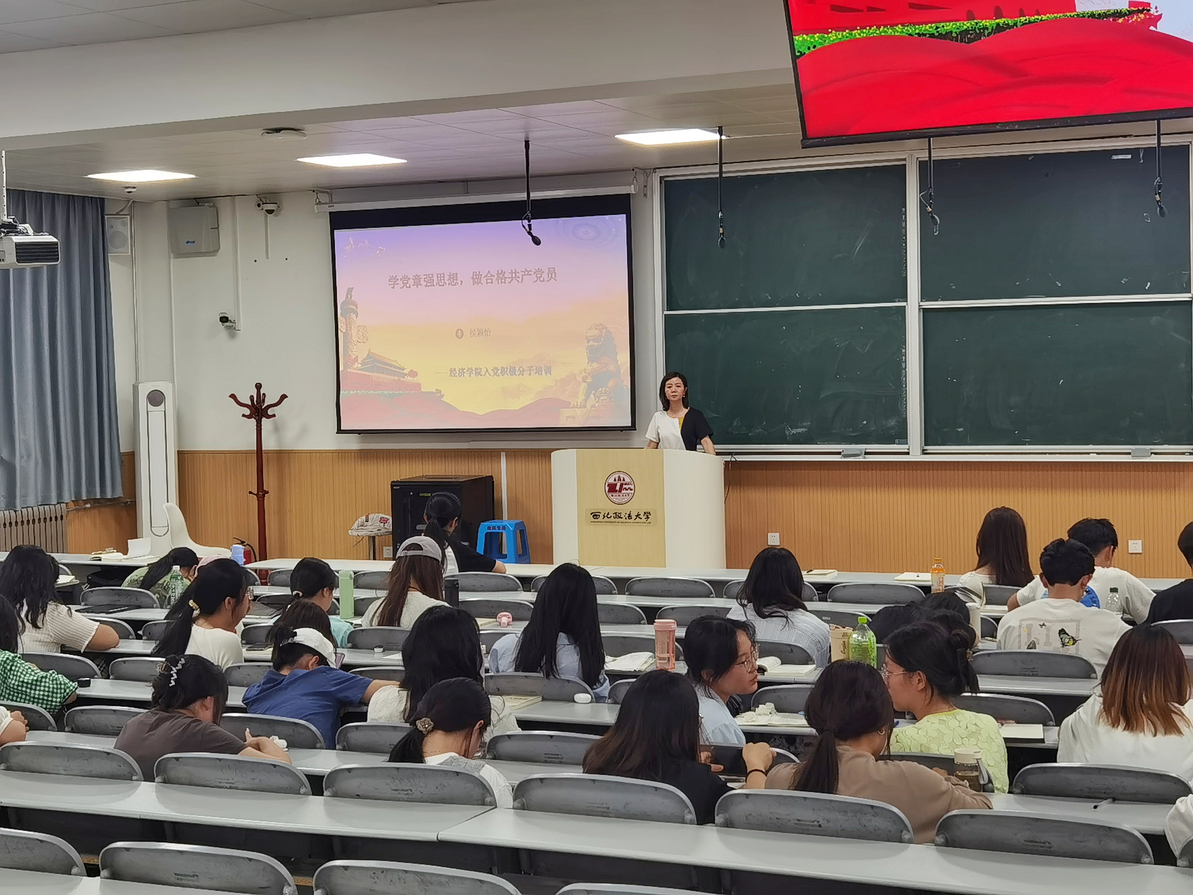 侯颖怡老师以《学党章强思想,做合格共产党员》为题,结合生动的案例,深入浅出地讲解了党章和党的基本知识、党员的权利和义务、加强党的纪律建设等内容。她强调,一要认真学习党章,落实党章精神,与学习党的二十大精神和习近平新时代中国特色社会主义思想紧密结合起来,深刻领会《党章》修正案的主要内容,深刻把握对党组织和党员行为规范作出的新规定,切实把《党章》要求贯彻到党的工作和党的建设全过程、各方面;二要加强党性修养,坚守初心使命。始终把政治意识和政治规矩放在首位,牢记国之大者,坚持用党章和党规党纪约束规范言行,认真履行党员义务,维护党中央权威和集中统一领导;三要凝聚青春力量,做合格共产党员。要大力弘扬党的优良传统,不负时代、不负韶华,担当作为、勤奋务实,积极向党组织靠拢,早日成为一名光荣的共产党员。