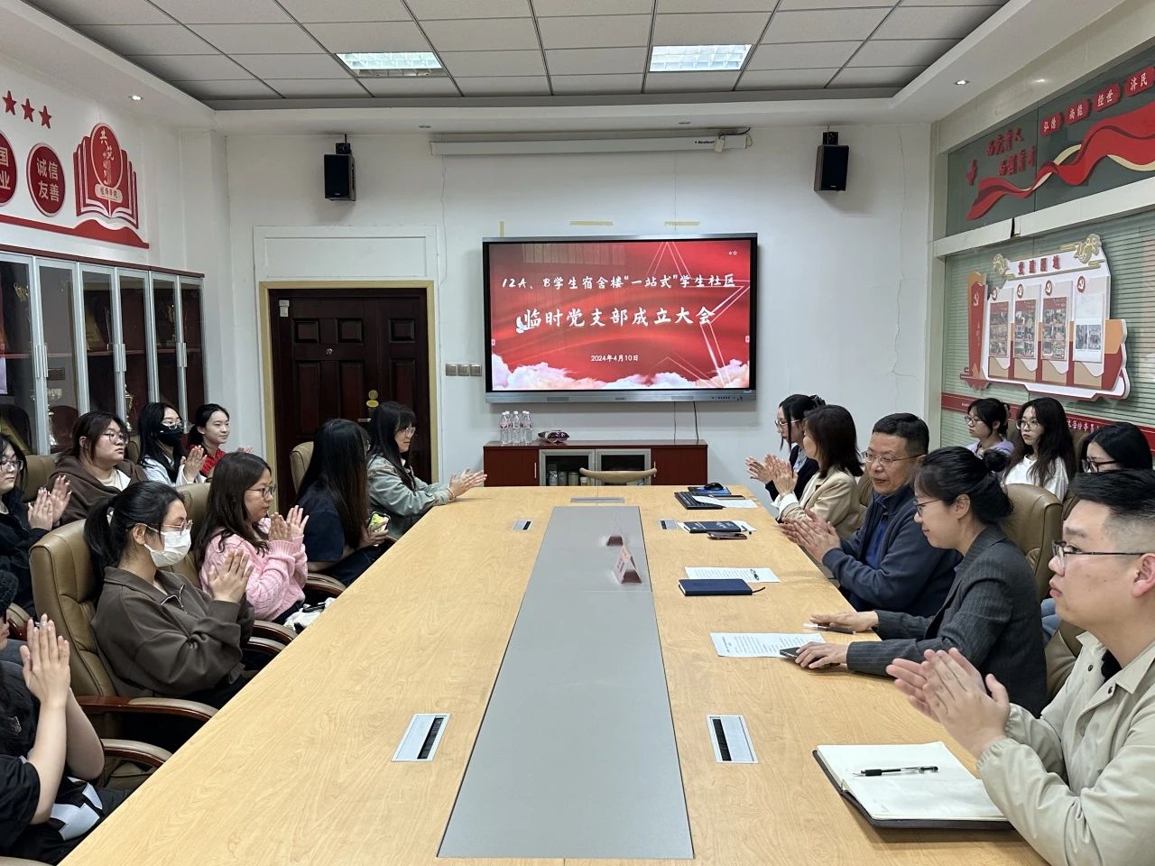 4月10日下午,12A、B站务委员会在天平楼A座关天会议室召开“一站式”学生社区临时党支部成立大会,学院党委书记王森、党委副书记侯颖怡,组织员段蓓蕾以及12A、12B公寓楼党员与入党积极分子代表参加此次会议。会议由学院团委书记刘佳主持。