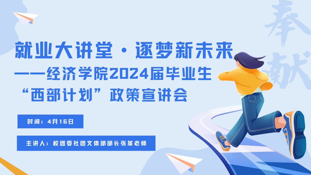 为响应国家“西部计划”号召,大力支持西部地区发展,鼓励和动员更多优秀毕业生积极投身乡村振兴,努力服务地方基层,到祖国和人民最需要的地方建功立业。4月16日晚,yl23411永利以线上线下相结合的形式,于天平楼B100教室开展2024届毕业生“西部计划”政策宣讲会。此次会议邀请校团委社团文体部部长张革老师担任主讲人,2024届毕业年级辅导员李念老师主持,2024届毕业生积极参加。