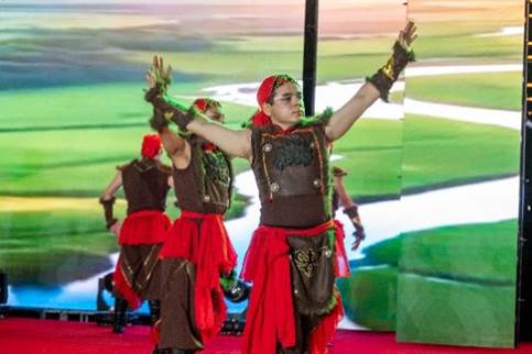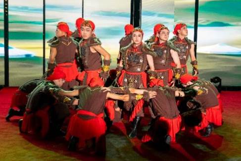 《天堂草原》以苍茫草原为灵感源泉,将蒙古族舞蹈的豪迈气魄与现代艺术构思相融合,同学们身着极具特色的民族服饰,通过刚劲有力的肢体语言与极具张力的节奏编排,将草原的雄浑辽阔演绎得淋漓尽致。在碧草连天的画卷之中,每一个舞姿既彰显出草原文化的深厚底蕴,又传递出经院学子昂扬向上的精神风貌。