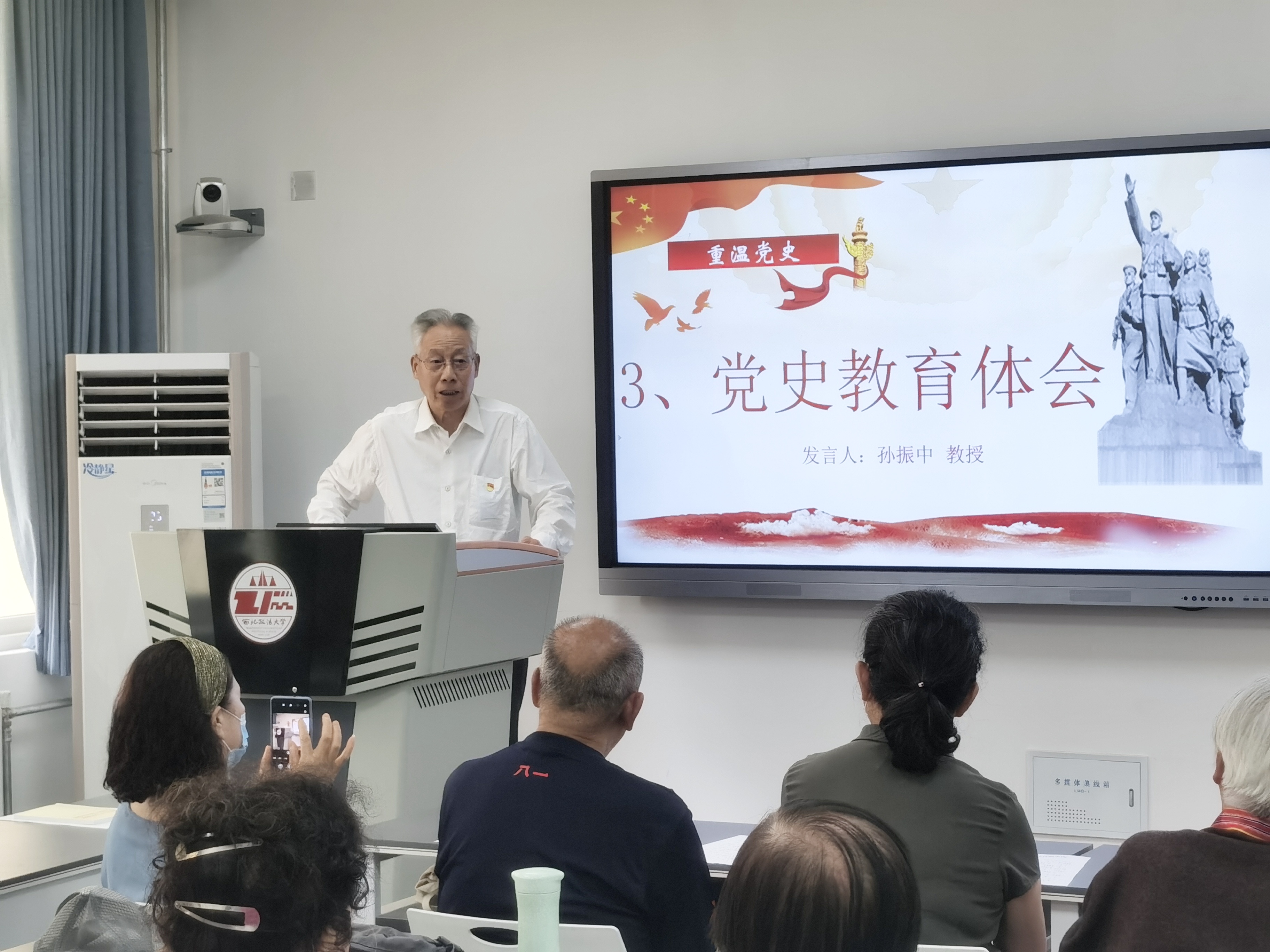 孙振中教授与大家分享了他的党史学习教育心得体会;崔景医教授和崔兰平教授带来诗歌朗诵《祖国颂》。她们的朗诵铿锵有力、激情四射,透过她们的声音令人感受到了新中国从最初成立到如今繁荣昌盛所经历的风雨坎坷;感受到了一代代中国共产党人始终不忘初心、砥砺前行的坚定决心。
