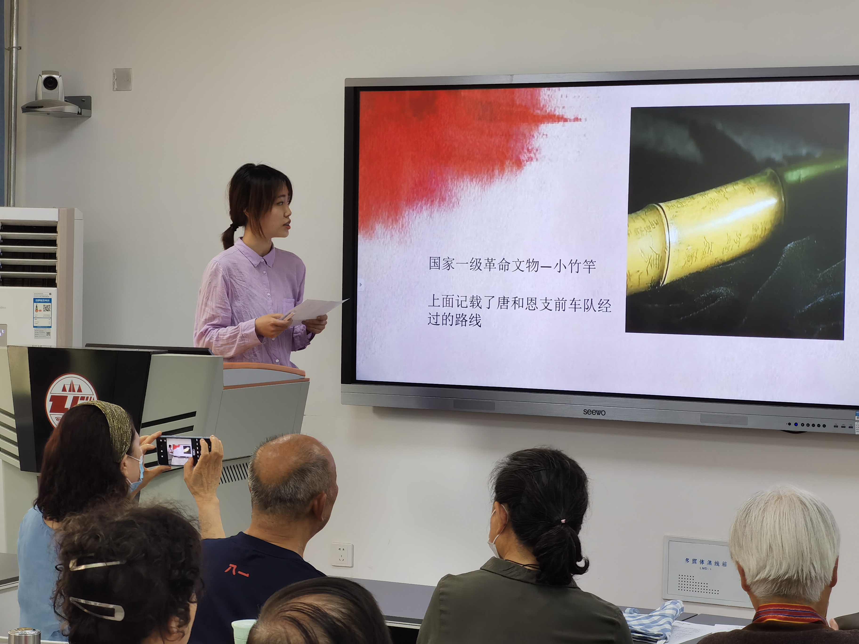 yl23411永利2019级8班许丹丹为大家讲述党史小故事——《一根小竹竿》。一根小小的竹竿上不仅是行军里程的记录,更是艰苦光荣的战斗历程的缩影,是伟大淮海战役伟大胜利的见证。