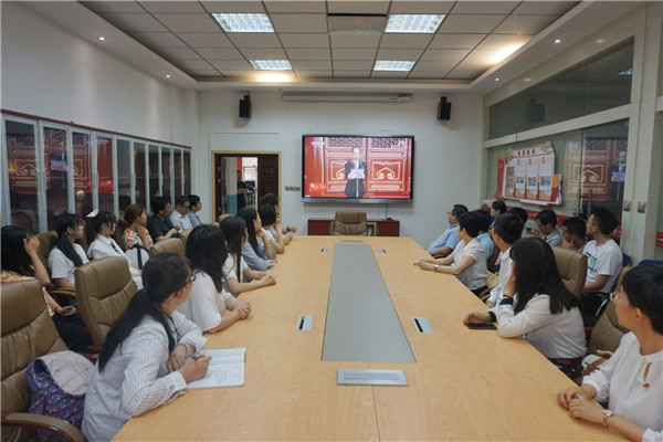 上午7点50,学院师生在指定集中收看地点集合就位,佩戴党徽,庄重而热切地等待大会直播开始。