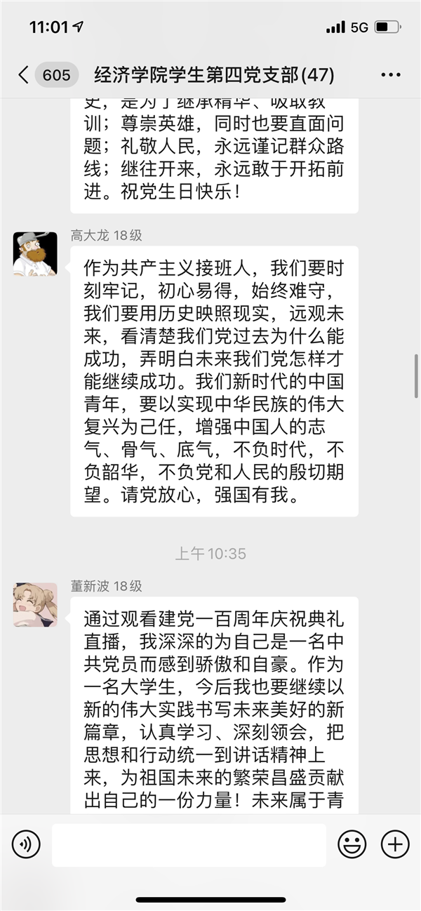 师生们普遍认为,中国共产党成立一百年来,始终坚守初心、矢志不渝,团结带领人民走过了上下求索、奠基立业光辉历程;书写了艰苦卓绝、可歌可泣的壮丽篇章;创造了中华民族发展史上的伟大奇迹;不断开辟马克思主义新境界,建立了中华民族继往开来、勇毅前行的现实基础。师生们表示,习近平总书记在大会上的讲话鼓舞士气、振奋人心,是指引我们前进的行动指南。办好中国的事情,关键在党。在新征程上,必须坚持党的全面领导,更加紧密地团结在以习近平同志为核心的党中央周围,进一步弘扬光荣传统、赓续红色血脉,继承建党精神、锤炼政治品格、践行责任担当,继续扎实开展党史学习教育,把学习党史与解决问题、推动工作紧密结合,为事业发展贡献积极力量。