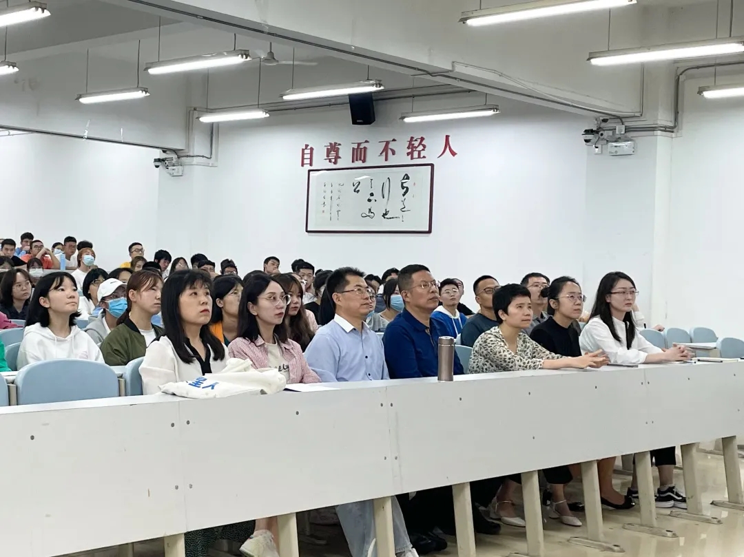 教师代表雎华蕾就“如何度过大学生活”发言。她表示,大学生活珍贵且短暂,同学们更要学会自律,寻找自我、坚持自我,“莫惜金缕衣,惜取少年时”,胸怀家国天下,将责任铭记于心。