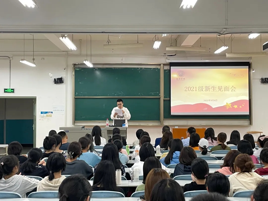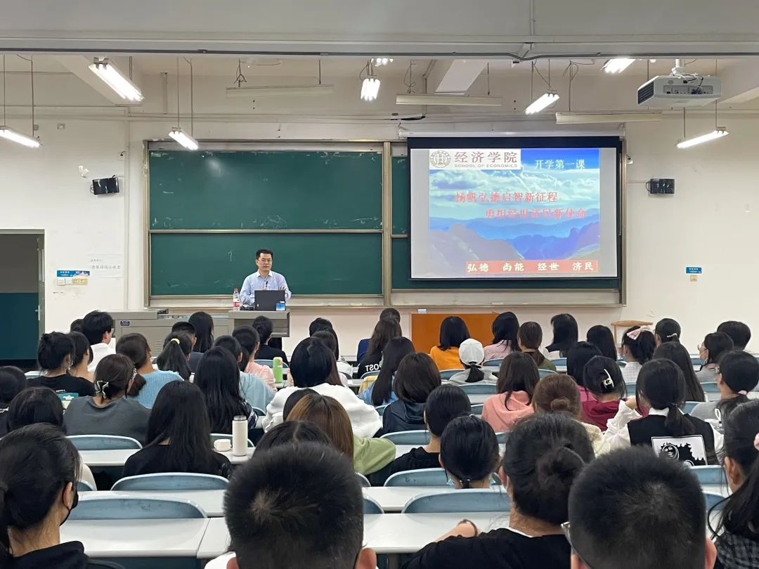最后,院长王胜利为全院新生讲述“yl23411永利开学第一课”。他首先介绍了学院发展历程,学科专业、师资状况。他指出,我国进入新发展阶段,贯彻新发展理念,构建新发展格局对于大学生提出的新的使命,大家要准确把握时代脉搏,紧跟时代发展步伐,将所学经济学理论与经济社会发展实践紧密结合,潜心钻研学术科研,积极为建设社会主义现代化强国做贡献。最后,王胜利从“弘德”和“启智”两个方面具体讲述,如何立足经济类专业勇担使命,成为适应新时代的应用性人才,并提出了树立远大目标,明确人生目标,加强思想道德建设,培养经济学思维,牢记诚信为本等建议。