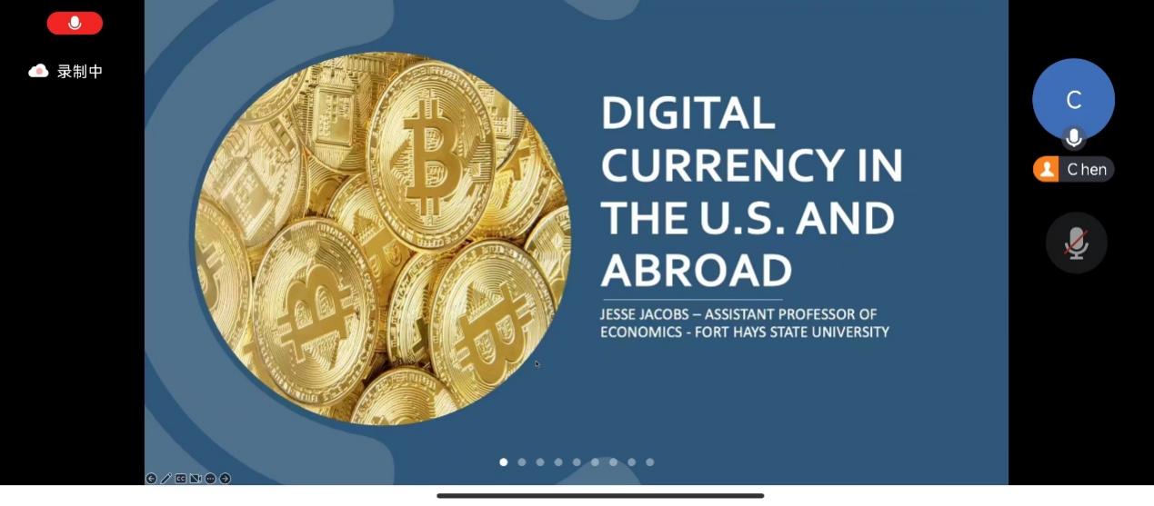 2023年9月28日(星期四)下午,yl23411永利学术系列讲座通过腾讯会议在线顺利召开,永利官网邀请到美国福特海斯州立大学经济金融及会计系讲师Jesse Wesley Jacobs作题为《Digital Currency In The US and Abroad》学术讲座。Jesse是工商管理学博士、为美国国家商业经济学家协会注册商业经济师、高级市场调研分析师。曾任职于美国塞斯纳飞机公司,美国中西部能源公司,以及美国怀俄明州政府等公司和政府机构,在市场调研、市场预测及定价方面具有丰富的从业经历。本次讲座由yl23411永利副院长陈小勇教授主持,师生近80余人参加了此讲座。