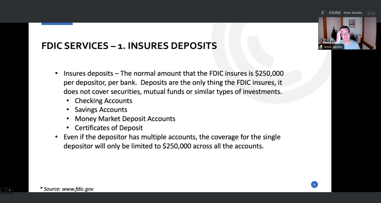 Jesse博士首先向大家讲解了银行处置相关定义,针对凭金融机构自身能力无法恢复到应有生存水平而需要监管机构处置的这一情况,指出不同国家有不同的银行处置办法。而美国则是通过成立美国联邦存款保险公司(FDIC)来对银行金融机构进行监管与处置。