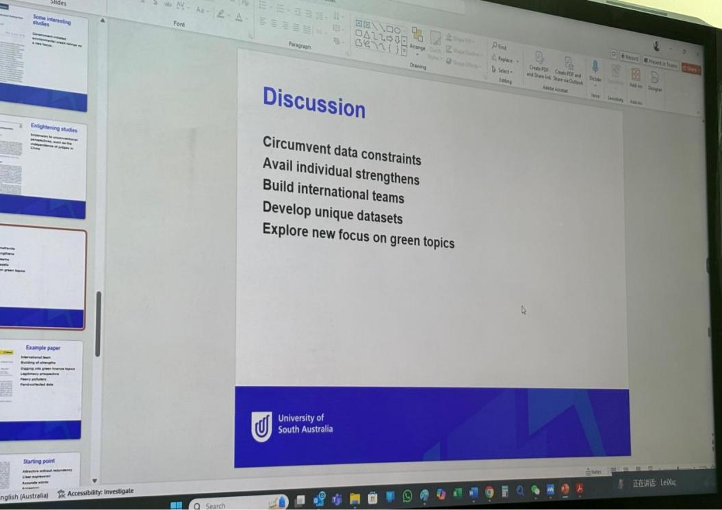 首先,徐磊主编指出开展绿色金融相关研究要勇于打破专业的条条框框,主动借鉴经济、会计、营销等专业的研究方法,并以绿色并购为主题,系统介绍了学术文章写作过程中,如何选题?如何解决数据问题?如何对每一句、每一段进行构思和用词?