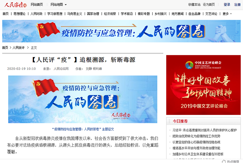 自从新型冠状病毒肺炎疫情在我国爆发以来,社会各方面都受到了很大冲击。我们有必要对这场疫病追根溯源,从源头上扼住病毒流行的源头,总结经验教训,以免重蹈覆辙。